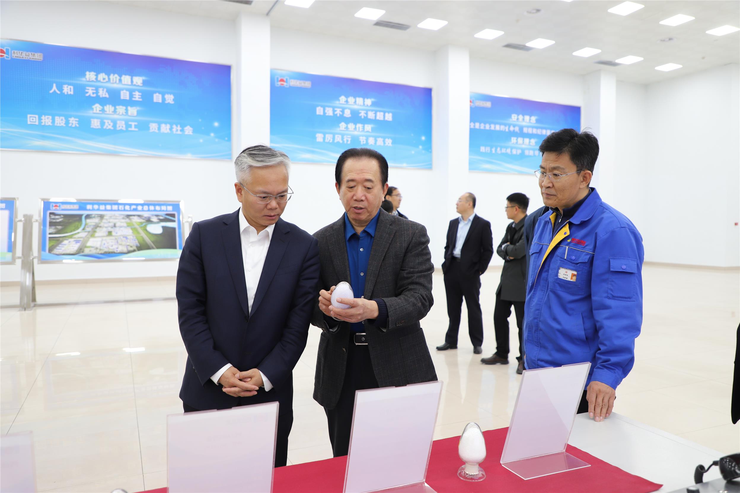 在集团科技大楼一楼多功能厅,李玉生总经理向包建军副行长汇报了集团发展情况与银企合作情况。他说,利华益集团在多年的创业和发展中,与中国建设银行山东省分行建立起了良好的合作关系,在项目建设、信贷融资等方面得到了贵行的支持帮助,共同构建起了银企关系和谐的良好局面。得益于中国建设银行山东省分行的支持帮助,利华益集团创新企业融资机制,采用了“信用融资”模式,保障了企业资金链的舒展运行,实现了长足的发展,促进了三大实体产业的提质增速,加快了企业的转型升级和升级转型步伐,建设起了国内领先的炼化精细化学新材料新能源一体化高端石化产业集群、国家现代中药产业化示范基地和全国紧密纺生产基地,打造了四条全产业链、锂电池电解液溶剂新能源产业链在内的九条产业链条,多个项目列入了国家增强制造业核心竞争力专项、产业振兴和技术改造专项、山东省重点项目、新旧动能转换重点项目,利华益维远化学股份有限公司在上交所主板成功上市,集团成为山东省高端化工产业领军企业榜首企业、山东省新材料产业集群领军企业、山东省重点产业链链主企业、铸链延链补链强链产业链开发模式典范企业。希望在今后的发展上,继续得到中国建设银行山东省分行更大的支持帮助,在生产经营、项目建设等方面实现更加深入的银企合作,实现双方合作共赢,从而加快打造起高端产业集群基地,为地方经济发展做出更大贡献。