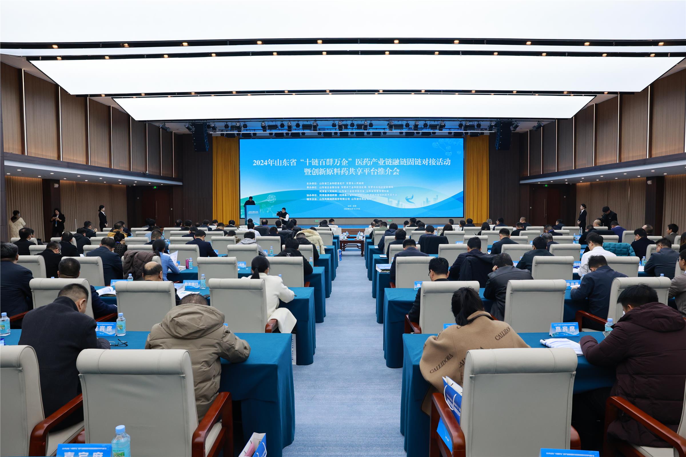 12月11日,为深入贯彻省委、省政府决策部署,深入实施技改升级行动计划,进一步促进大中小企业融通创新,推动医药产业链提质增效,由省工业和信息化厅、市人民政府主办,省企业联合会、市工业和信息化局、市市场监督管理局、县人民政府、省工业经济联合会、省质量管理协会承办的2024年山东省“十链百群万企”医药产业链融链固链对接交流活动在利津县文化教育基地多功能厅举行。县委常委、副县长张向阳主持活动,省工业和信息化厅服务体系建设处副处长景方凯,市工业和信息化局党组书记、局长陈桂林,县委书记张亚东,链主企业山东凤凰制药股份有限公司董事长兼总经理陈国玉等领导出席活动并致辞,苏州科技大学材料科学与工程学院院长李长明教授以及中国非处方药物协会专家委员会委员、顾问程刚两位专家做了精彩报告,各地市工信局中小企业主管部门领导、各乡镇街道和县直各部门主要负责同志以及来自省内外70余家医药产业链上下游企业,15家金融及数字化服务机构的代表共计170余人参加活动。