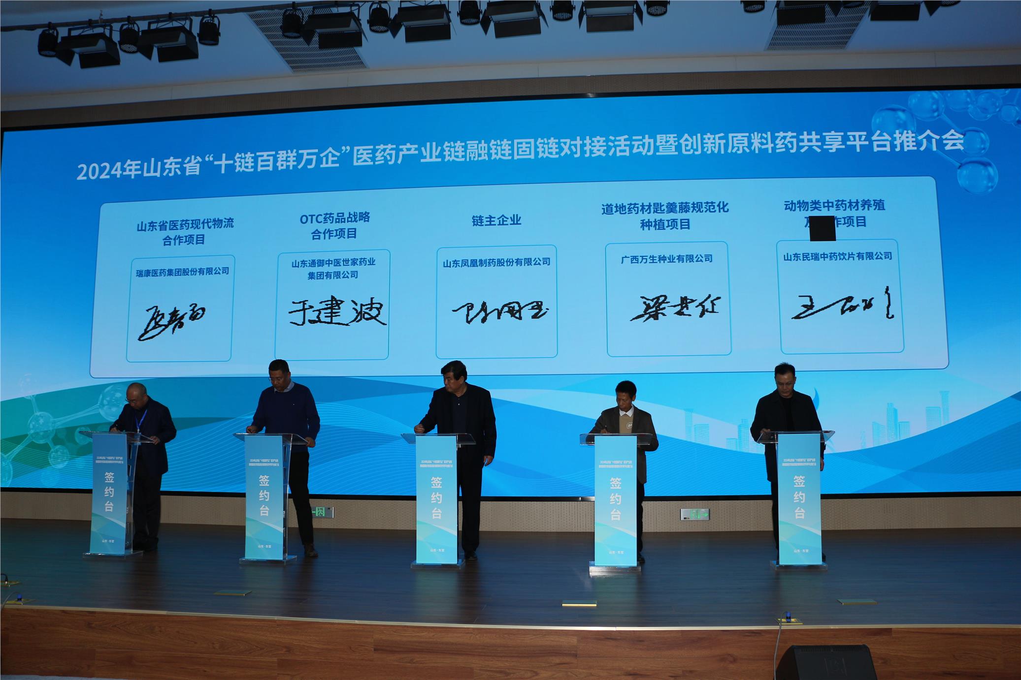 活动现场,达成合作意向企业举行了集中签约仪式。在下午的专场对接交流活动中,医药产业链主企业山东凤凰制药股份有限公司、山东道合药业有限公司围绕中药材、原料药、设备设施、安全环保等方面,向参会企业发布了技术、研发、市场等方面的合作需求。山东烟台药盟互联网科技有限公司、齐鲁银行股份有限公司东营分行等路演机构及企业从匹配链主企业需求、推介专属供应链产品等方面作路演,向参会企业推介产品和服务,并设置了专家组现场点评环节。