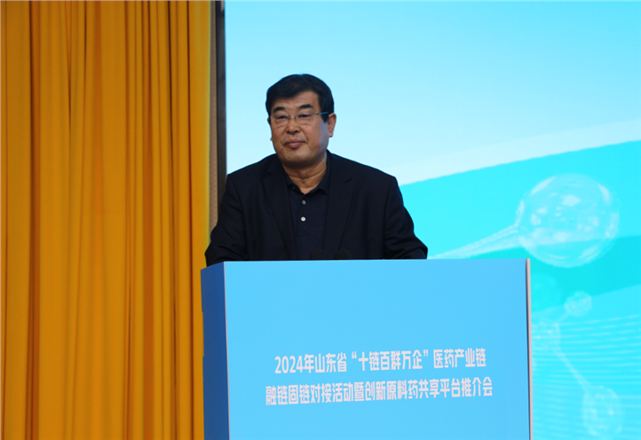 在接下来的链主企业代表致辞环节,陈国玉董事长兼总经理作为全省医药产业链链主企业代表致辞,汇报了凤凰制药公司基本情况和产业链培育建设发展规划。他说,山东凤凰制药股份有限公司是利华益集团的控股子公司,是国家高技术产业化示范基地、国家重点高新技术企业、国家综合性新药研究开发技术大平台产业化示范企业。公司始终秉持“以中成药为主,发展合成药,开发高仿及生物药”的发展路径不动摇,自主开发了1.1类中药创新药芪蛭益肾胶囊、天丹通络片(胶囊)、复方川芎片(胶囊)、金石清热颗粒、女珍颗粒等独家品种,在研中药创新药品种多个,拥有中成药及化药近百个批准文号,产品涵盖了心脑血管、糖尿病及并发症、妇科、消化系统等疾病治疗领域。建设完整稳健并富有韧性的产业链是医药产业高质量发展的重要保障。作为山东省医药产业链主企业,公司将秉承“合作、开放、共享”的原则,继续发挥龙头牵引作用,与上、下游相关企业加强沟通交流,互利互惠,强化核心竞争力,共建共赢生态圈,为广大人民群众提供更加优质、便捷、高效的医药健康产品。在今后的发展上,凤凰制药公司将与链上企业携手共进继续深化合作,实现资源共享与优势互补,打造特色医药产业链,为全省医药产业经济高质量发展作出更大贡献!