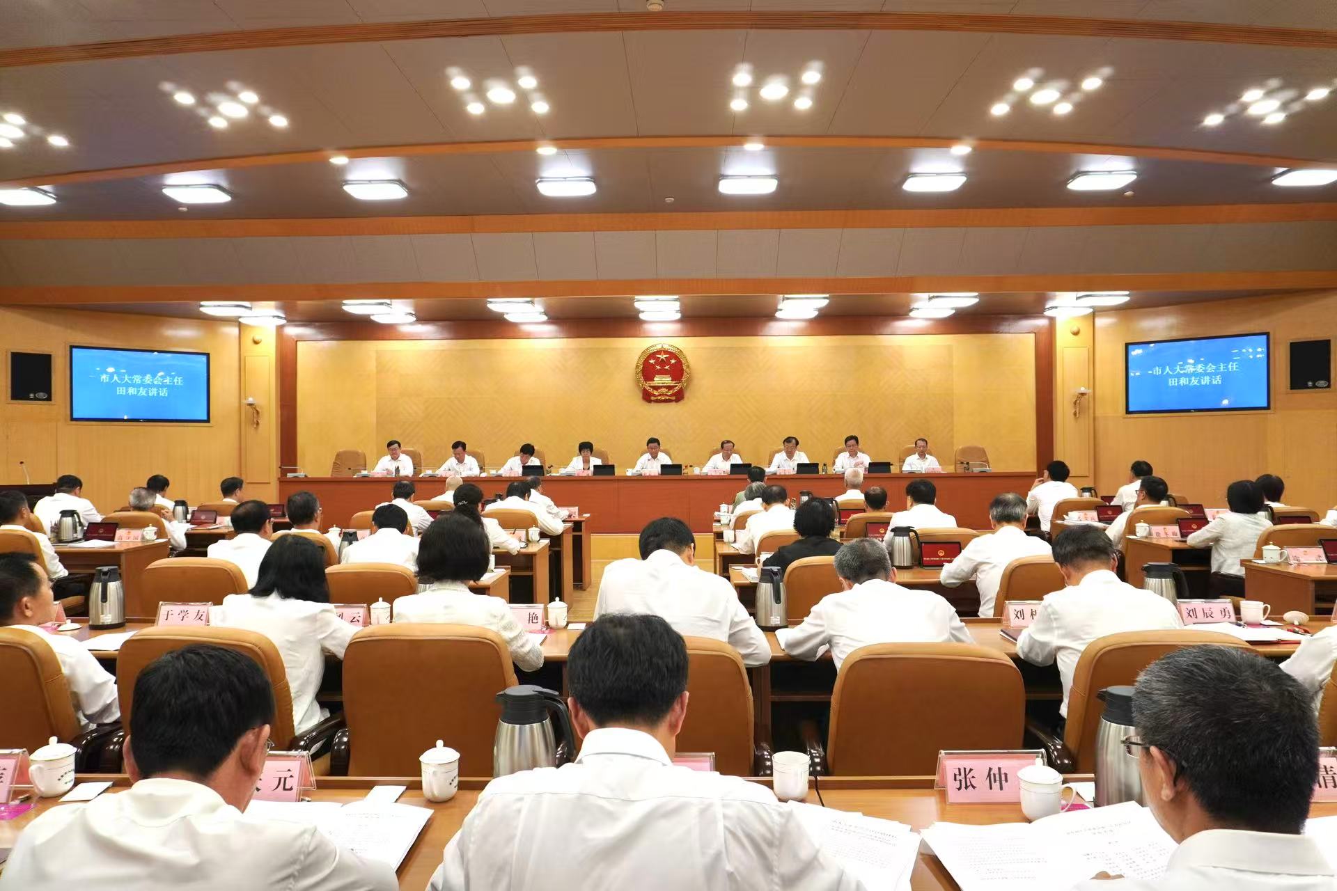 会议指出,全市上下要坚持以习近平新时代中国特色社会主义思想为指导,认真学习贯彻市委七届九次全会精神,按照“四个高”工作要求和“两个高于”工作目标,创新实干、事争一流,确保高质量完成全年目标任务。要立足人大职能,不断提高立法质量,增强监督实效,充分发挥人大代表作用,为推动全市经济社会高质量发展作出更大贡献。
