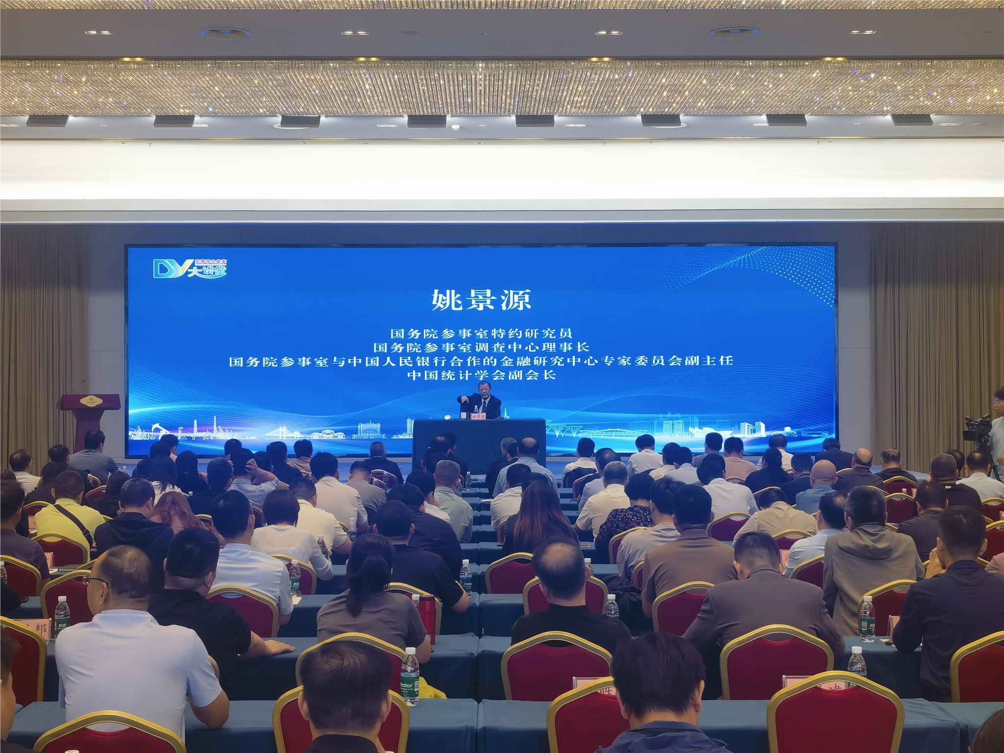 为引导企业家在世界百年未有之大变局下精准研判国内外经济形势,有效应对挑战、抢抓发展机遇,9月25日,市工业和信息化局成功举办“中国经济的内外挑战与企业发展战略选择”专题报告会暨“企业家大讲堂”活动。活动特别邀请国务院参事室特约研究员、国务院参事室社会调查中心理事长、著名经济学家姚景源先生作专题报告,全市骨干民营企业、市属国有企业负责人及市县(区)工信部门相关负责人等三百余人参会。利华益集团副总经理、总会计师赵宝民,集团副总经理王海峰,化学公司总经理李秀民,凤凰制药公司董事长兼总经理陈国玉,各公司、部门参会代表等一行17人参会培训。