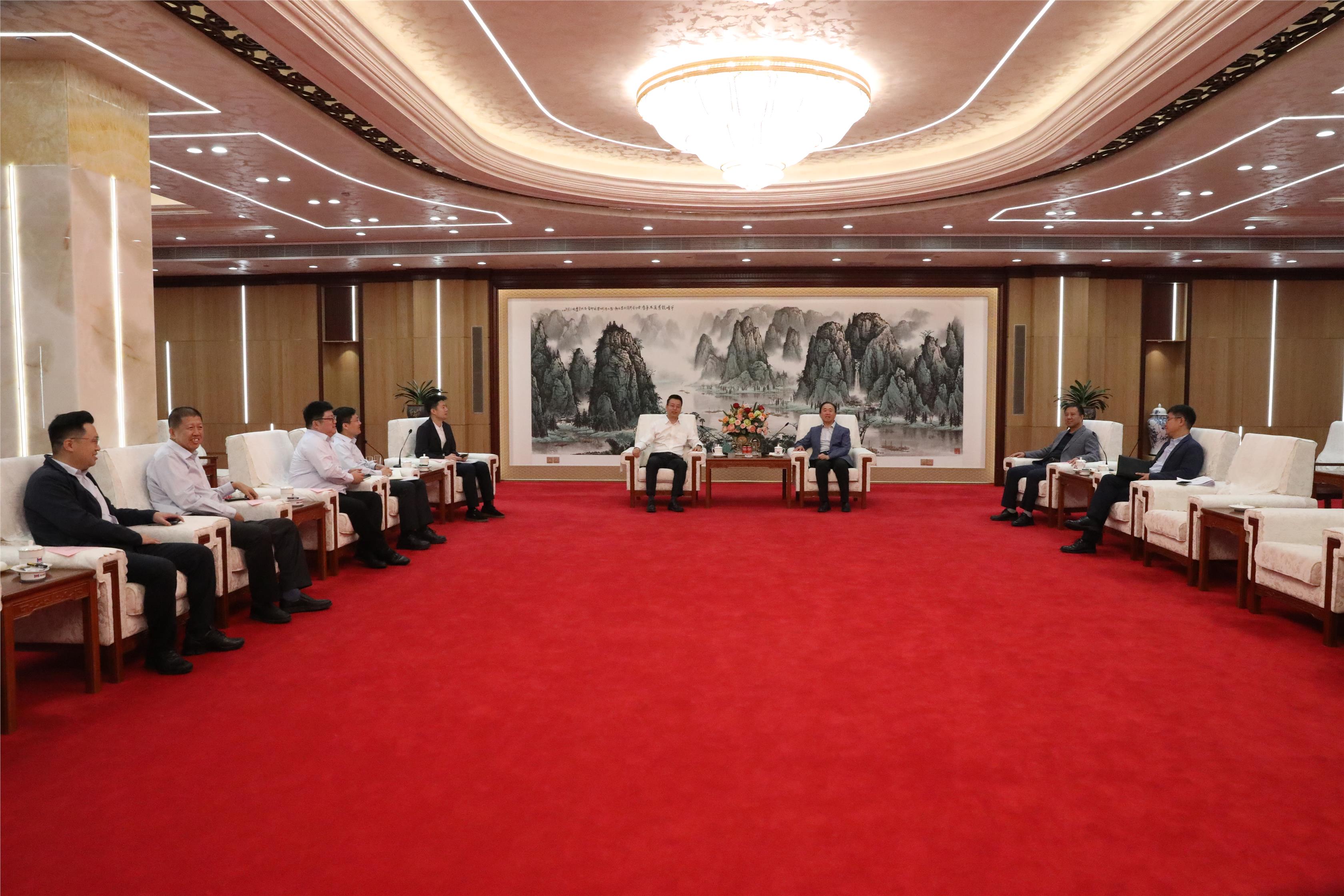 在集团科技大楼一楼多功能厅,李玉生总经理对李建元行长一行莅临调研表示热烈欢迎,并汇报了集团发展情况与银企合作情况。他说,利华益集团在多年的创业和发展中,与广发银行济南分行建立起了良好的合作关系,在项目建设、信贷融资等方面得到了贵行的支持帮助,共同构建起了银企关系和谐的良好局面。得益于银行的支持帮助,利华益集团创新企业融资机制,采用了信用融资模式,保障了企业资金链的舒展运行,实现了长足的发展,促进了三大实体产业的提质增速,加快了企业的转型升级和升级转型步伐,建设起了国内领先的炼化精细化学新材料新能源一体化高端石化产业集群、国家现代中药产业化示范基地和全国紧密纺生产基地,打造了四条全产业链、锂电池电解液溶剂新能源产业链在内的九条产业链条,多个项目列入了国家增强制造业核心竞争力专项、产业振兴和技术改造专项、山东省重点项目、新旧动能转换重点项目,利华益维远化学股份有限公司在上交所主板A股成功上市,成为山东省有史以来最大的化工企业IPO、近年来山东省最大的IPO项目。希望在今后的发展上,继续得到广发银行济南分行更大的支持帮助,在生产经营、项目建设等方面实现更加深入的银企合作,实现双方合作共赢,从而加快打造起高端产业集群基地,为地方经济发展做出更大贡献。